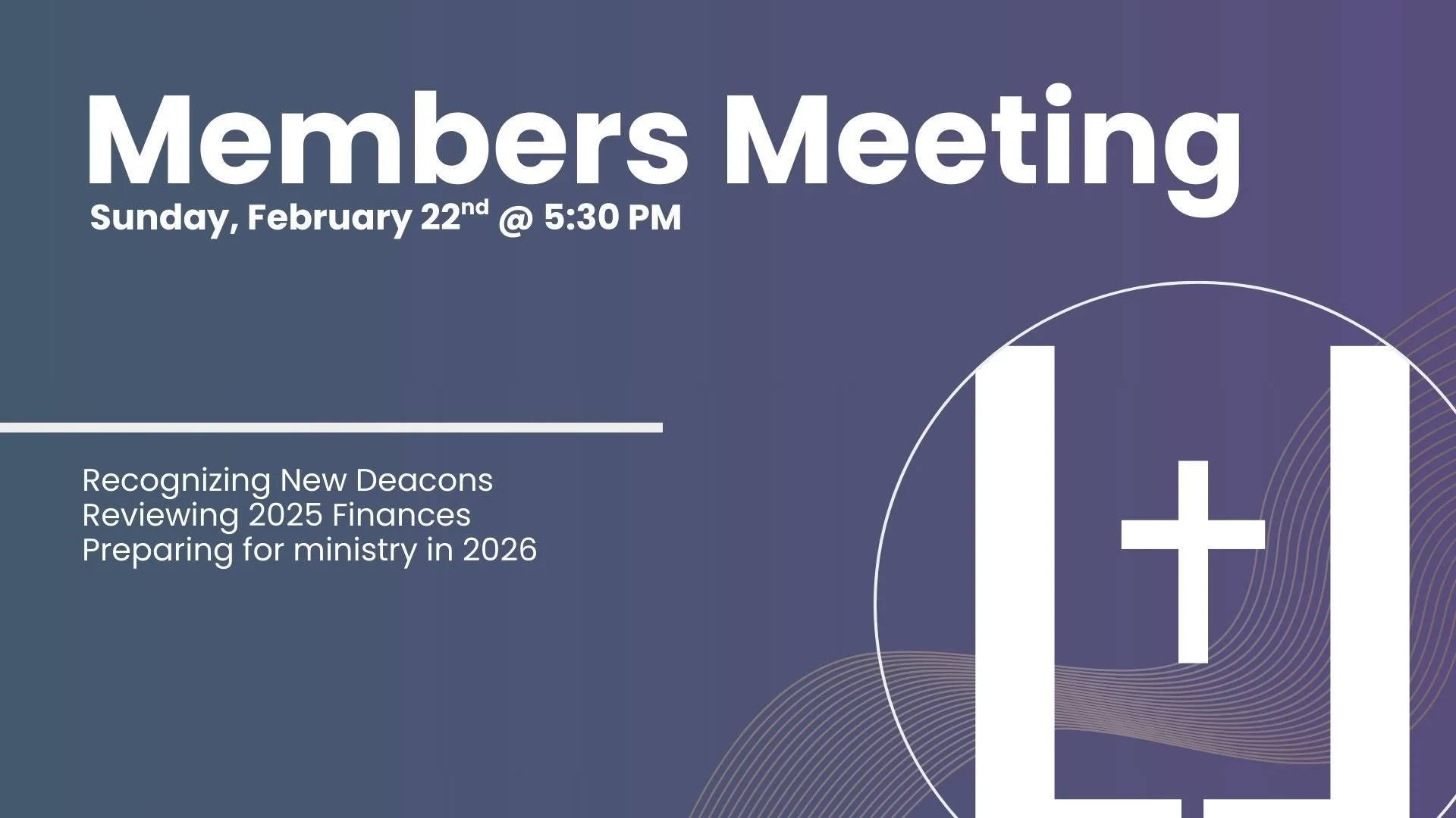 Members of Lifeline are invited to participate in our annual members meeting to meet our new deacons, to review our financial reports, and to hear about what is to come in the coming year for Lifeline Church.